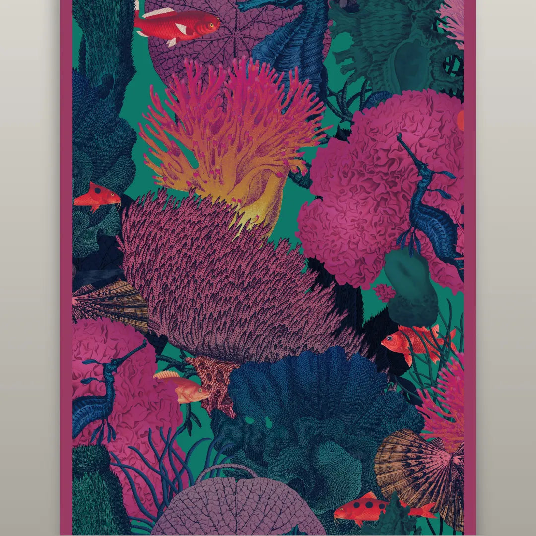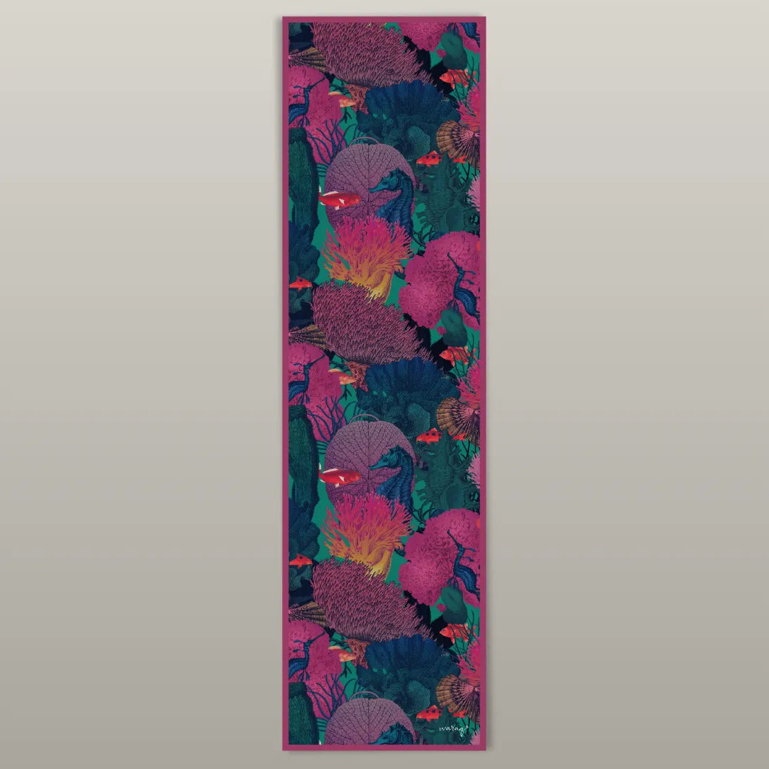 Inspired by coral dreams and ocean tales, this scarf dives through sea-fantasy hues - from fuchsia and teal to sun-kissed gold.